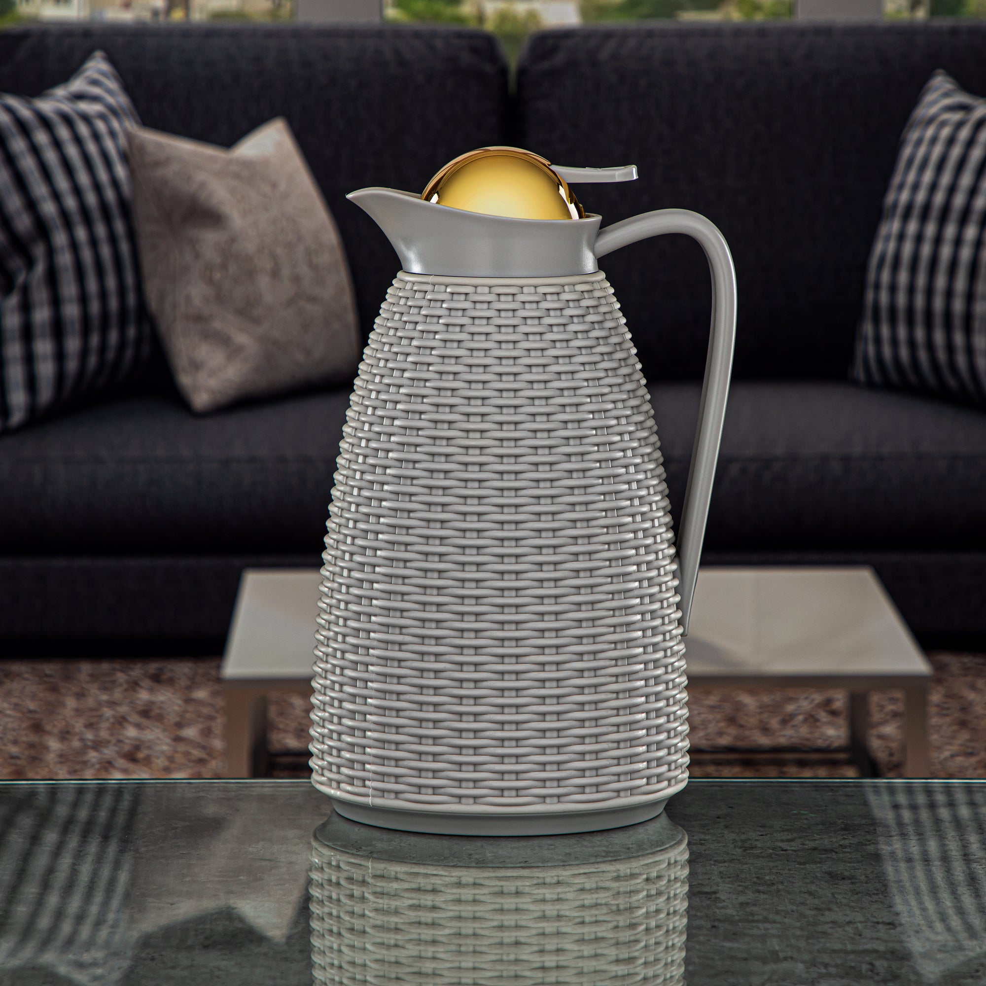 انغمس في الراحة الفاخرة التي توفرها مجموعة ترامس المرجان المكونة من قطعتين. احتفظ بقهوتك الساخنة أو الشاي أو الكرك أو الشاي الأخضر في درجة حرارة مثالية، كل ذلك مع إضفاء الأناقة على لونها الرمادي فاتح وذهبي.
