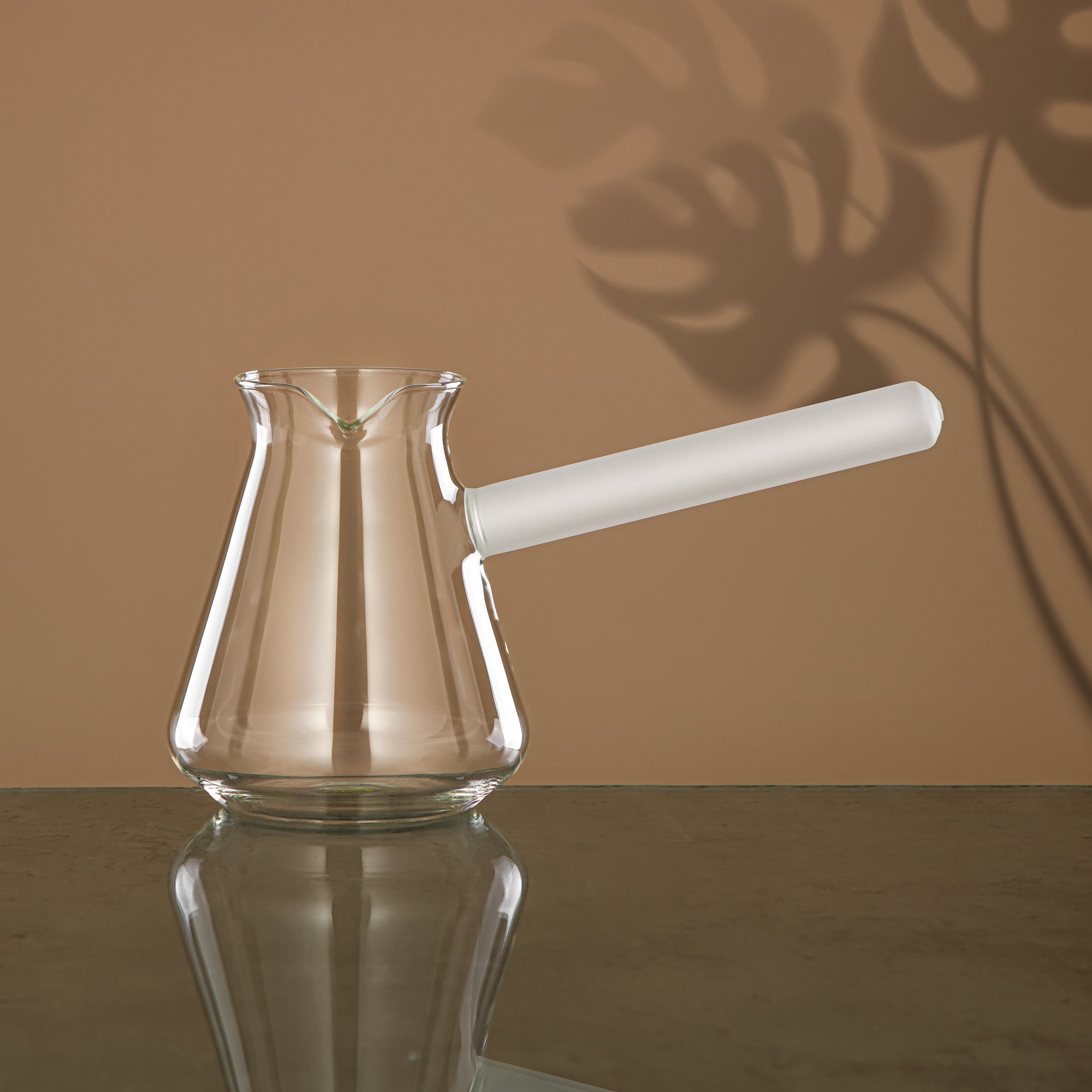 تجمع سخانة القهوة هذه بين الحرفية المدروسة والتصميم اللافت، مما يضمن تسخين مشروباتك بدقة وتقديمها بأناقة. حجمها الكبير، ومواد الزجاج الفاخرة، ومقبضها المزجج الخفيف يجعلها قطعة بارزة في أي مجموعة من أدوات التقديم.
