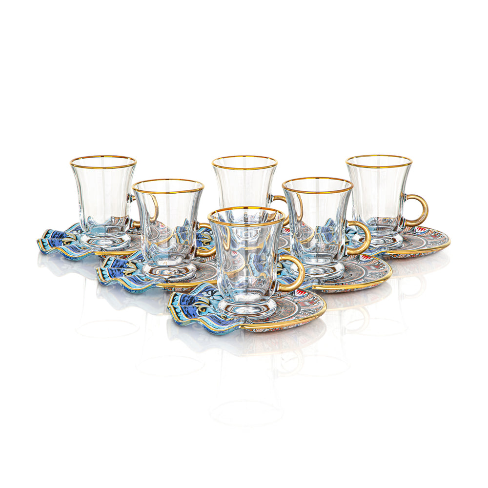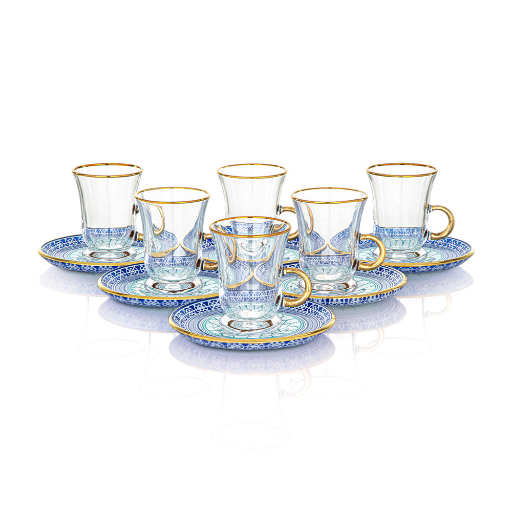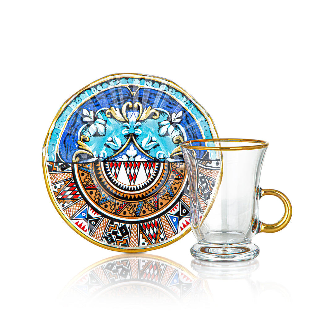 Almarjan Tea Cup & Saucer Clear with Blue Flower