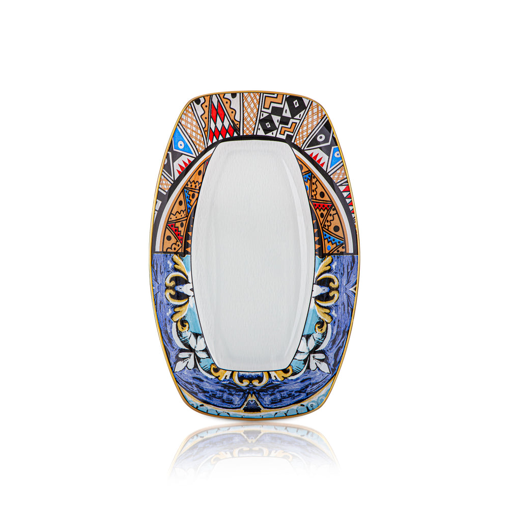 Almarjan Gold-Plated Oval Serving Tray with Porcelain Bowl - 45CM, Made in ItalyAlmarjan Gold-Plated Oval Serving Tray with Porcelain Bowl - 45CM, Made in Italy