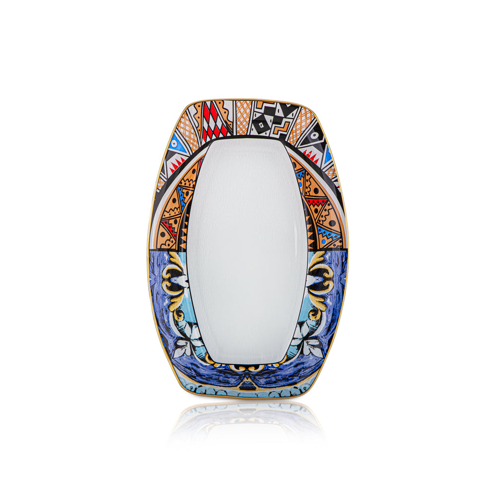 Almarjan Mirror Polish Rectangle Serving Tray with Porcelain Bowl - 40CM, Made in ItalyAlmarjan Mirror Polish Rectangle Serving Tray with Porcelain Bowl - 40CM, Made in Italy