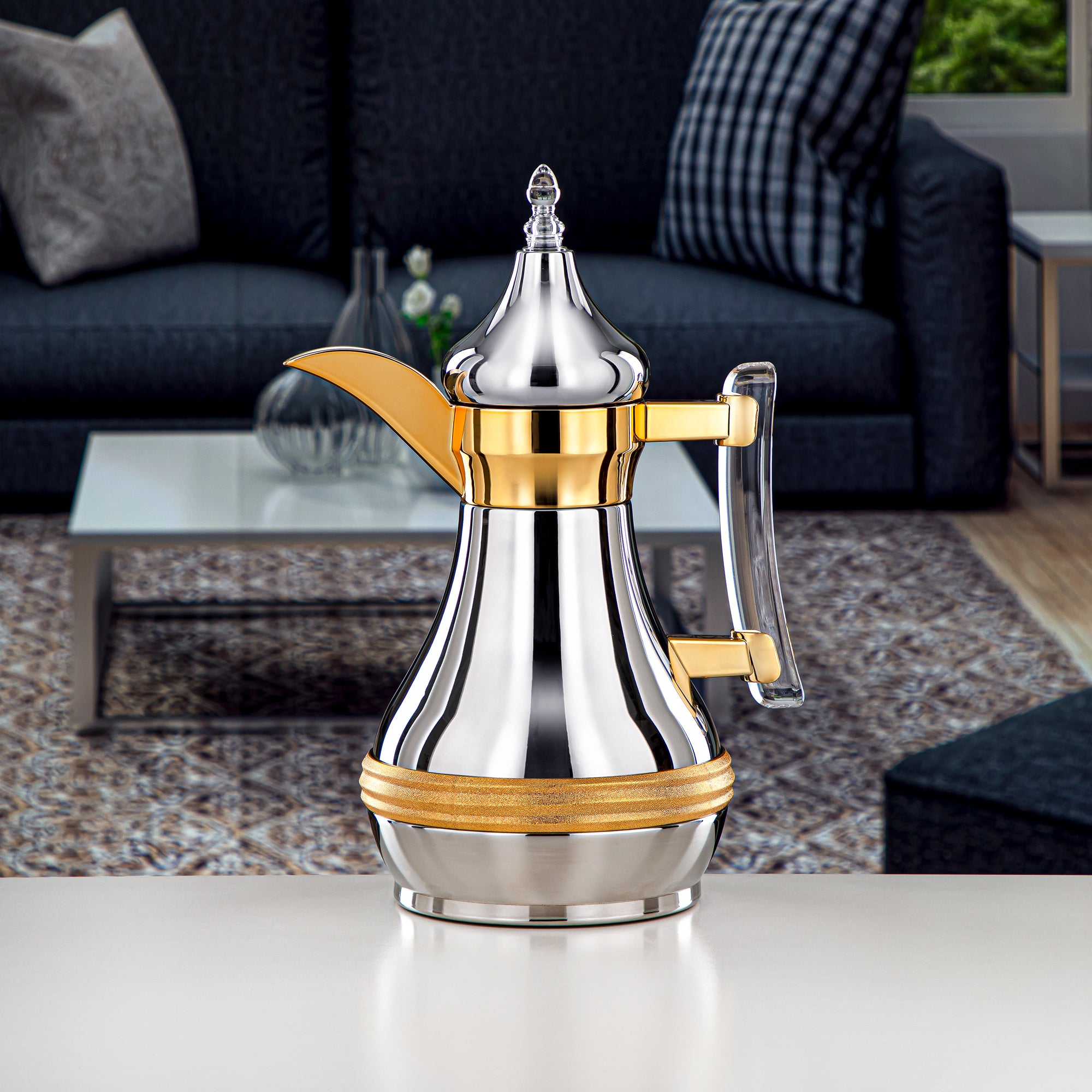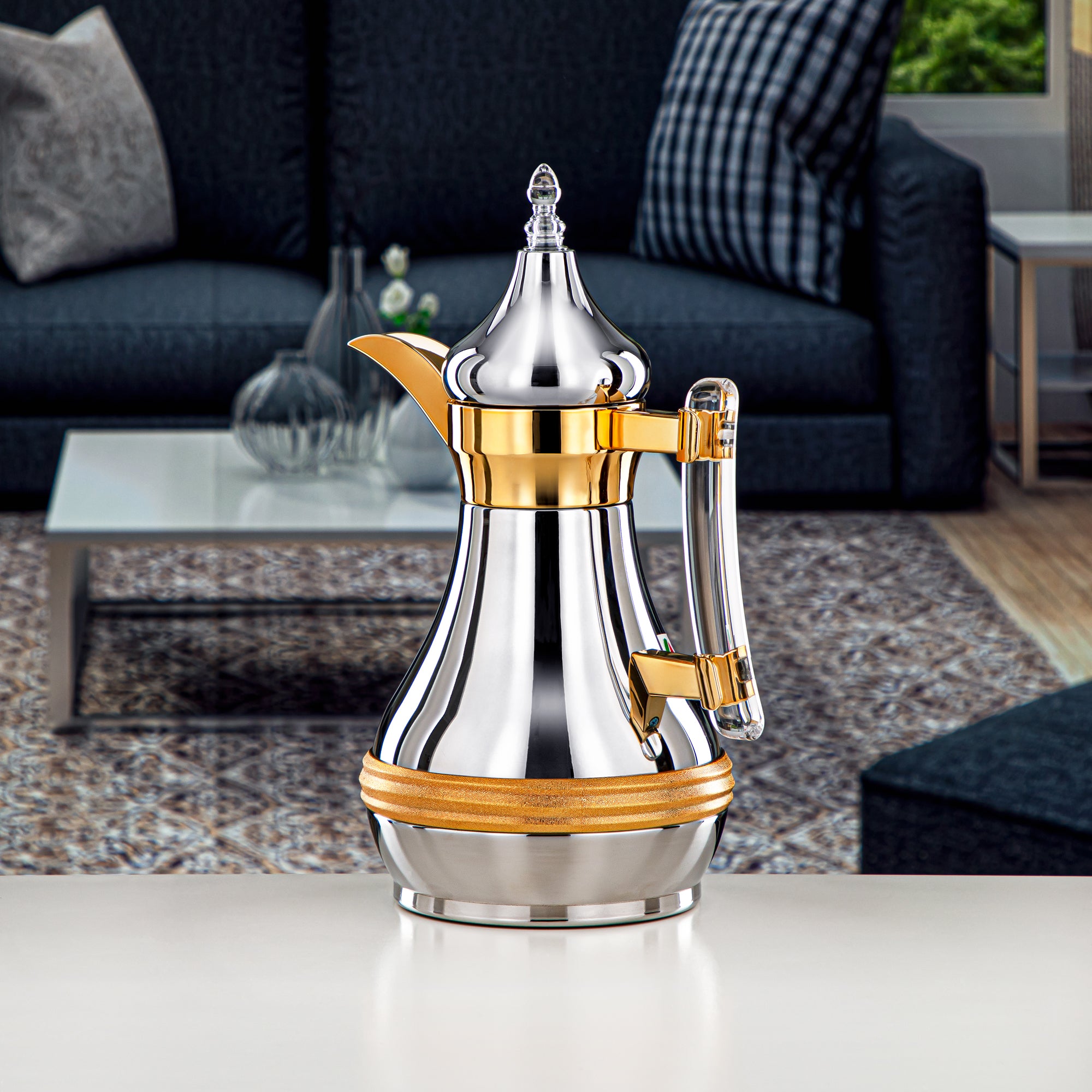Almarjan 1 Liter Stainless Steel Vacuum Dallah Silver & Gold - SND-100CRG-CLR