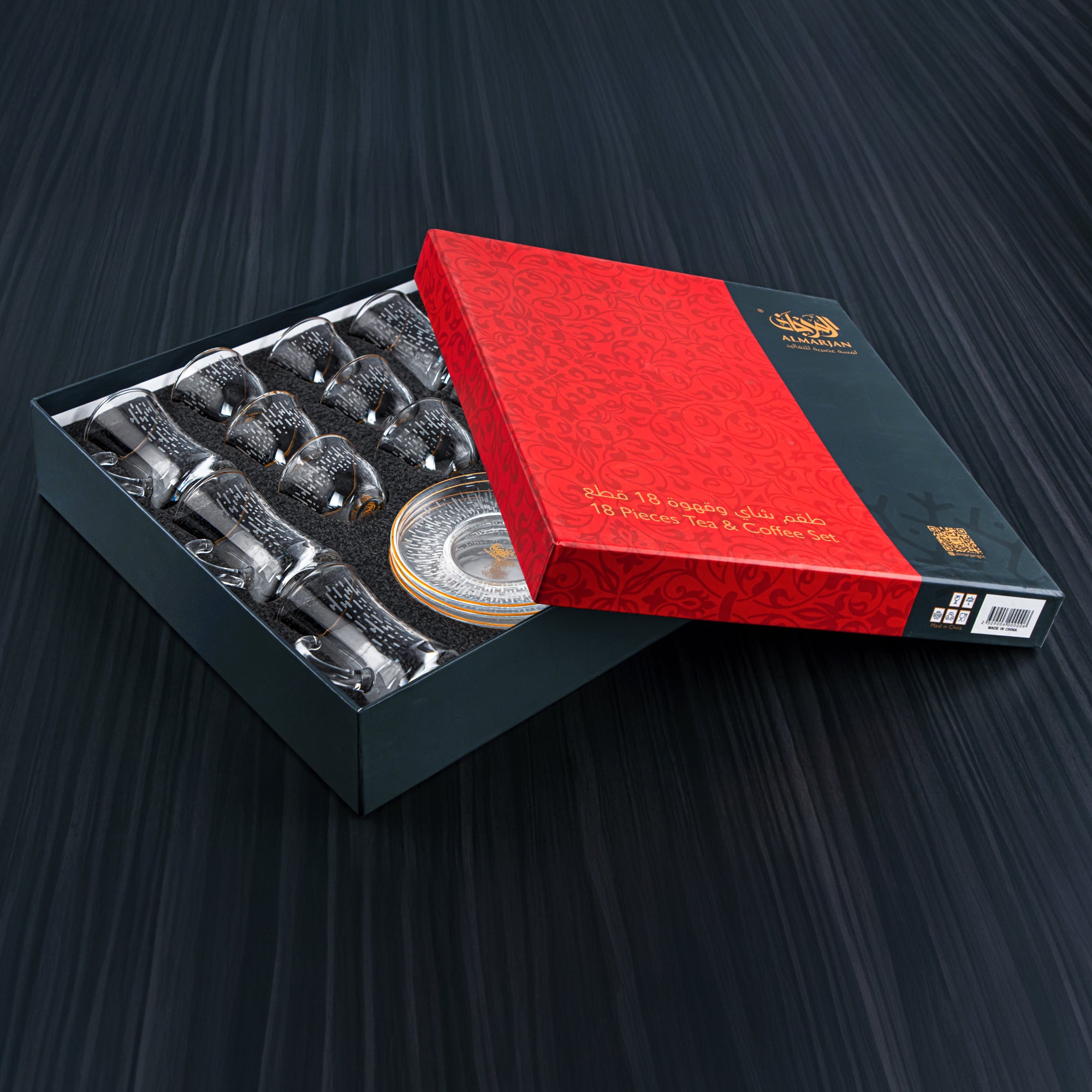 Almarjan 18 Pieces Luvia Collection Glass Tea & Coffee Set With Golden Rim - GLS2630024