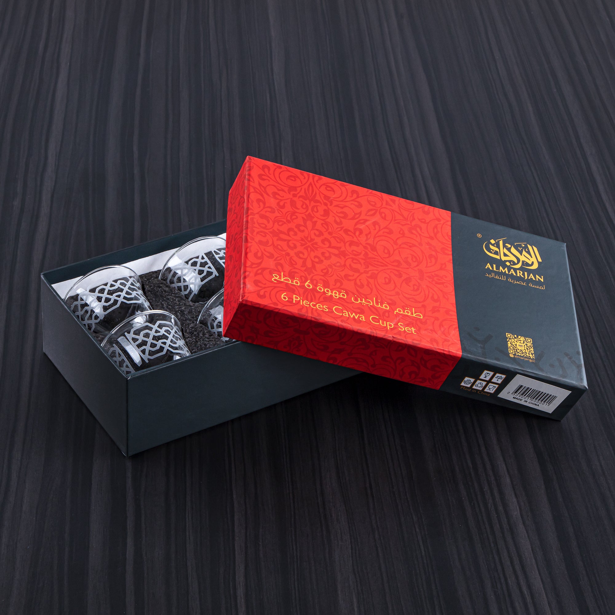 Indulge in the luxurious Almarjan Diamond Collection Glass Cawa Cup. Its stunning diamond pattern engraving, accompanied by a silver rim, elevates any occasion. Impress your guests with traditional Arabic coffee during special occasions like Ramadan and Eid. A tasteful addition to any welcoming gesture for loved ones.