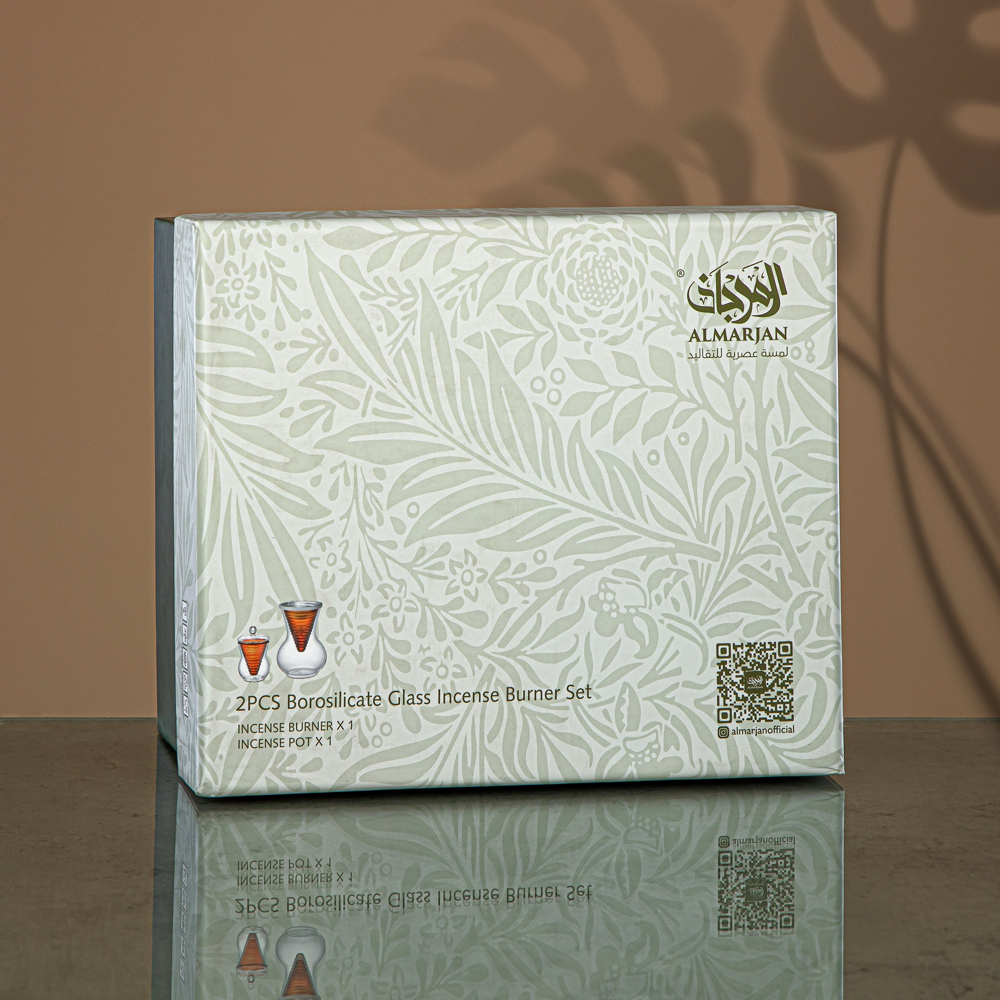 Elevate your home ambiance with the Almarjan Incense Burner Set. Designed to combine functionality with elegance, this 2-piece borosilicate glass set allows you to enjoy the rich tradition of burning oud or incense with a contemporary twist.